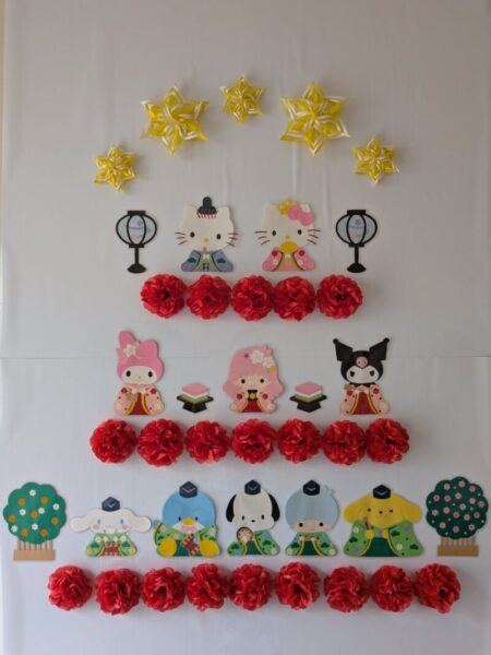ここいろてらすに入ると壁には可愛い手作りひな壇がお出迎えしてくれます。